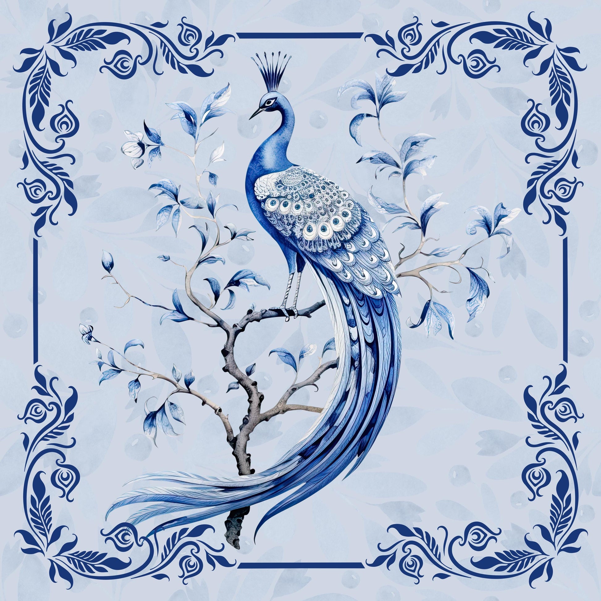 Blue Peacock on a Branch Mahjong Mat: Non-Slip Polyester, 31.5" Square