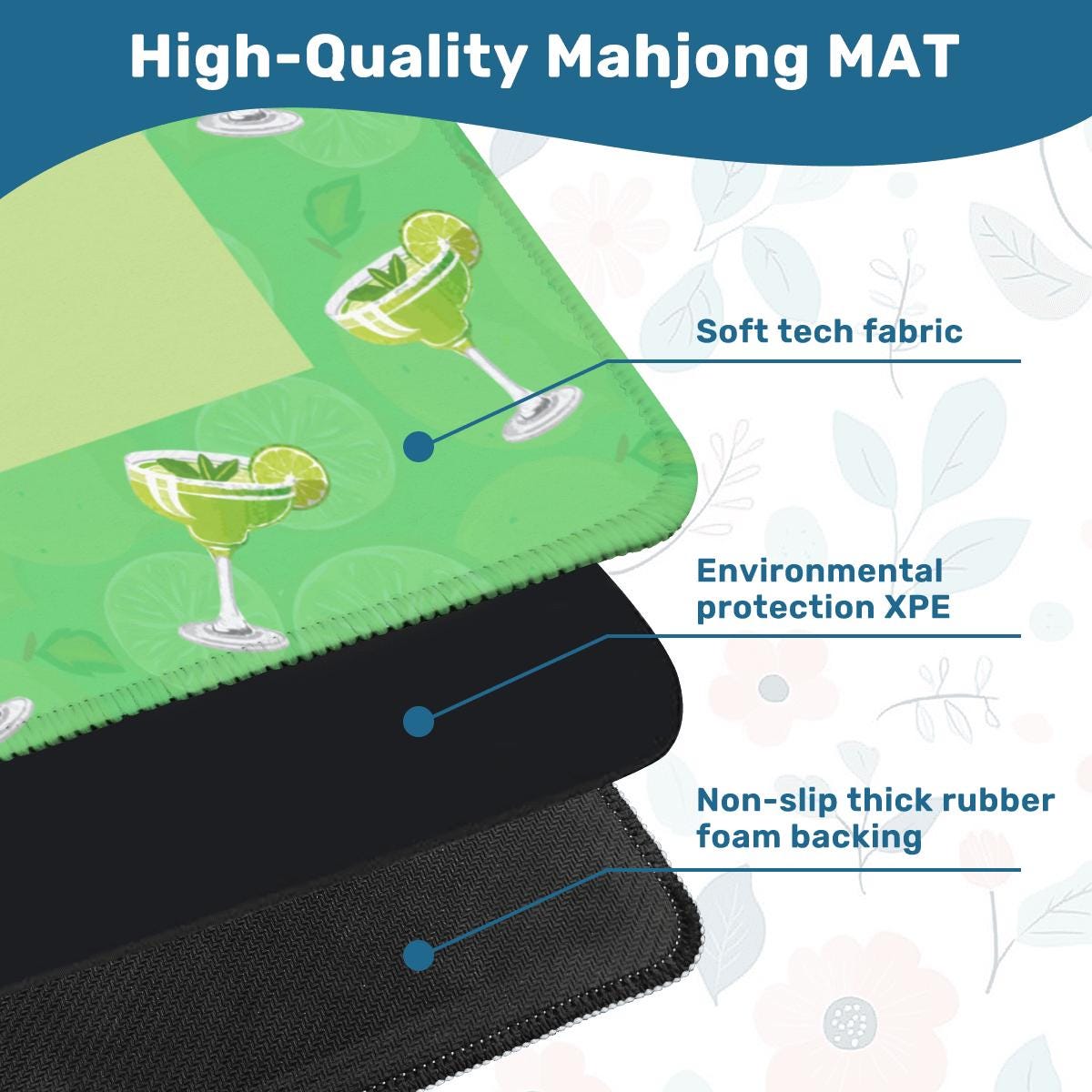 - Premium Quality: Made from durable polyester with a non-slip backing to eliminate movement. Generous Size: 31.5" x 31.5" square, 3mm thick for a comfortable and stable playing surface. Noise-Reducing & Table-Protecting: Smooth, soft top reduces tile clatter and stops table scratches. Complete Set: Includes Mahjong mat & storage bag.